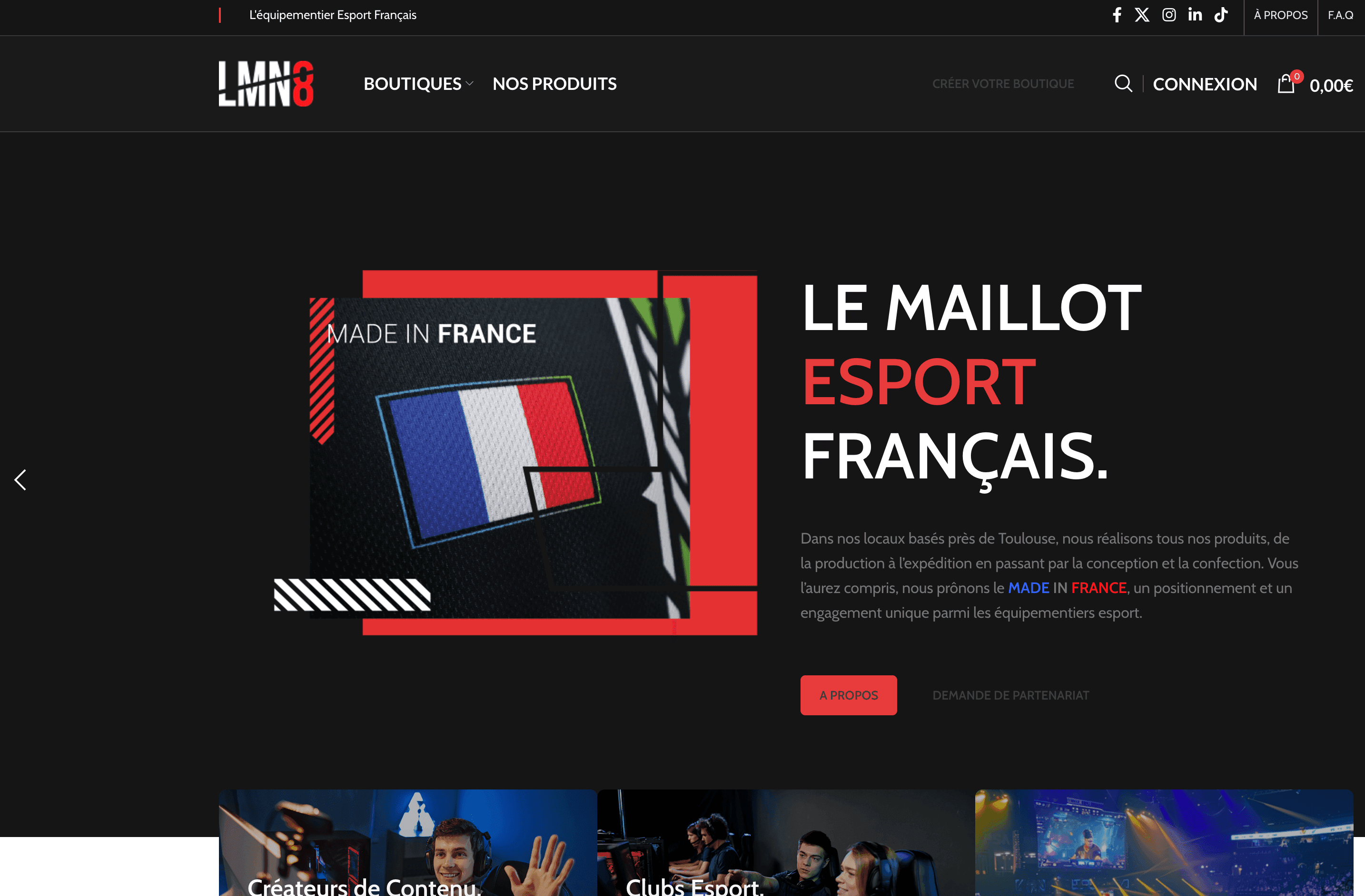 Équipementier eSport français reconnu, LMN8 permet aux équipes eSportives de créer leur gamme de merchandising et devenir leur propre sponsor.