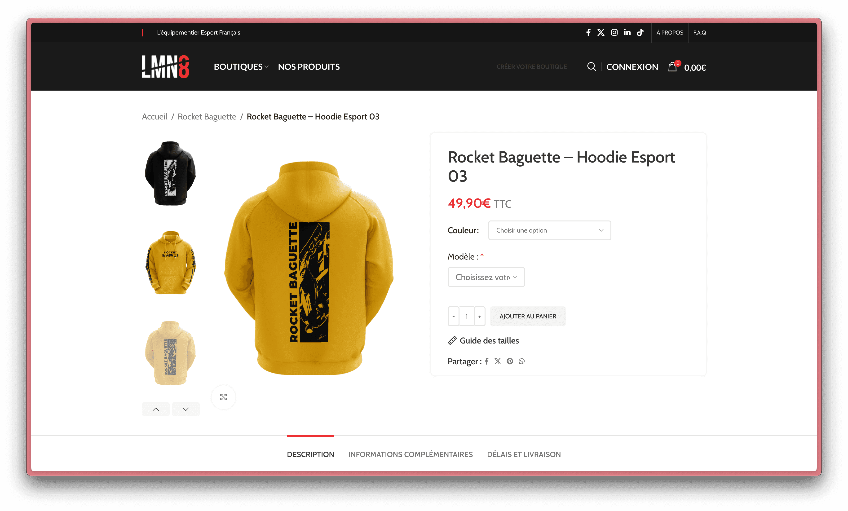 Équipementier eSport français reconnu, LMN8 permet aux équipes eSportives de créer leur gamme de merchandising et devenir leur propre sponsor.